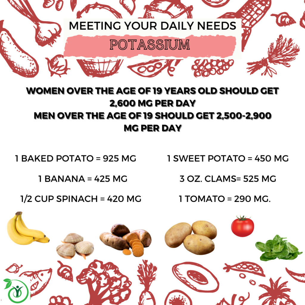 Potassium is such an interesting mineral that helps keep our body moving, hydrated, and able to communicate. The kidneys play a big role in helping our blood potassium levels stay in a healthy range and sodium helps it balance the fluid between the inside of the cell.1,2 This mineral is also super easy to incorporate into the diet which is good since it is such an important nutrient to have in our bodies. The next time you move your muscle, drink some water, or use your brain to communicate to the rest of the body, just remember it is all with the help of this social little nutrient.