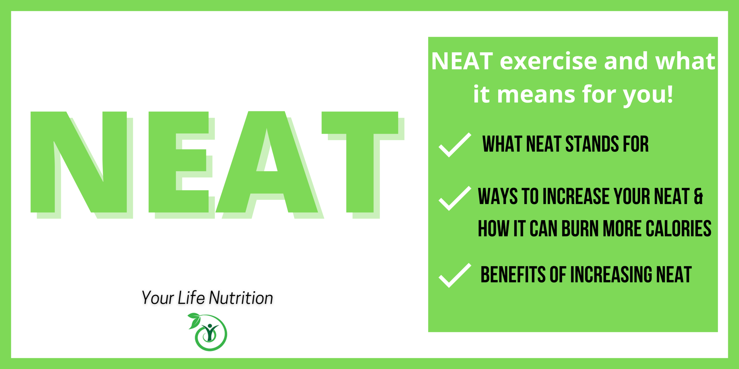 Through the years our society has become more sedentary. Low Non-Exercise Activity Thermogenesis (NEAT) may increase risks of obesity and diseases. Incorporating more NEAT exercises such as walking, doing household chores, and more can help keep physical activity levels up, increases NEAT and add up to many benefits such as an increase in overall energy, weight loss, and reducing risks for diseases and mortality.